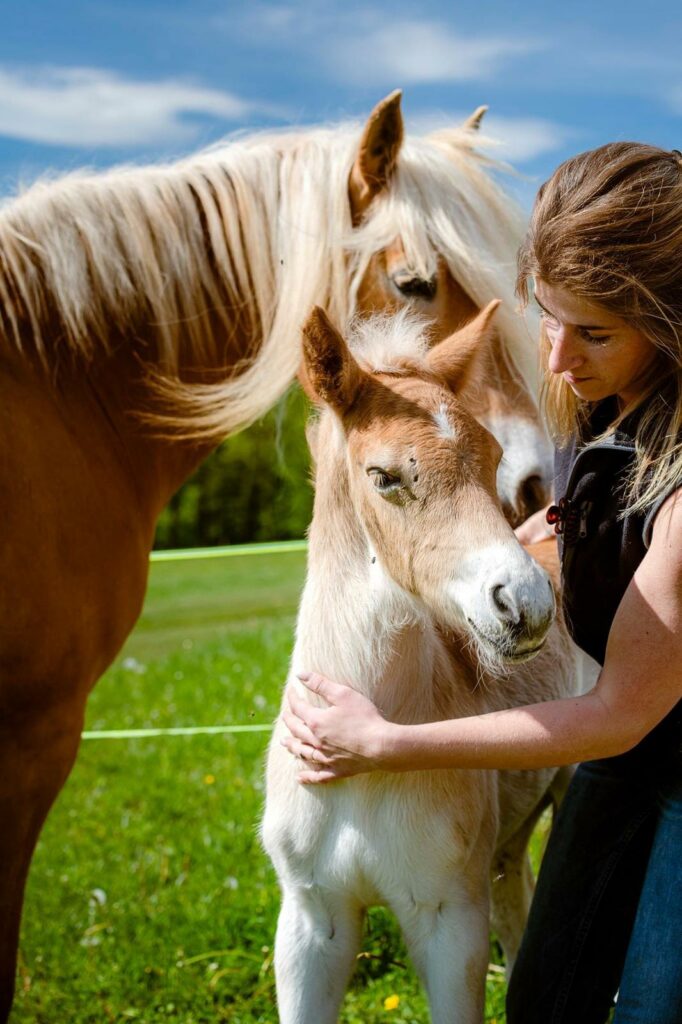 Jumenterie de race Haflinger, créée en 2017. Nos chevaux vivent au pré l’été et en stabulation libre l’hiver. Le précieux lait de jument est récolté avec amour et complicité pour en faire du lait et des cosmétiques.